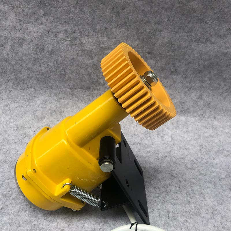 特點(diǎn):打滑開關(guān)的工作原理是:在膠帶機(jī)的非工作面上安裝一個(gè)壓帶輪,當(dāng)膠帶機(jī)運(yùn)行時(shí),帶動(dòng)壓帶輪轉(zhuǎn)動(dòng),再經(jīng)過(guò)傳動(dòng)機(jī)構(gòu)帶動(dòng)鐵芯轉(zhuǎn)動(dòng)(鐵芯裝在一個(gè)圓形的磁極內(nèi)),產(chǎn)生電磁力,使磁極轉(zhuǎn)動(dòng),壓迫動(dòng)觸頭使觸點(diǎn)閉合,膠帶機(jī)可以繼續(xù)運(yùn)行。當(dāng)帶速低于預(yù)先設(shè)定值時(shí)(即膠帶打滑),電磁力減小使觸點(diǎn)打開,顯示打滑并停止膠帶運(yùn)行。該套監(jiān)測(cè)裝置實(shí)際使用不理想,分析原因如下:①裝置安裝在回程皮帶上保養(yǎng)困難。②膠帶上下角度變化大,振動(dòng)也比較劇烈,經(jīng)常會(huì)造成檢測(cè)不良而停機(jī)。