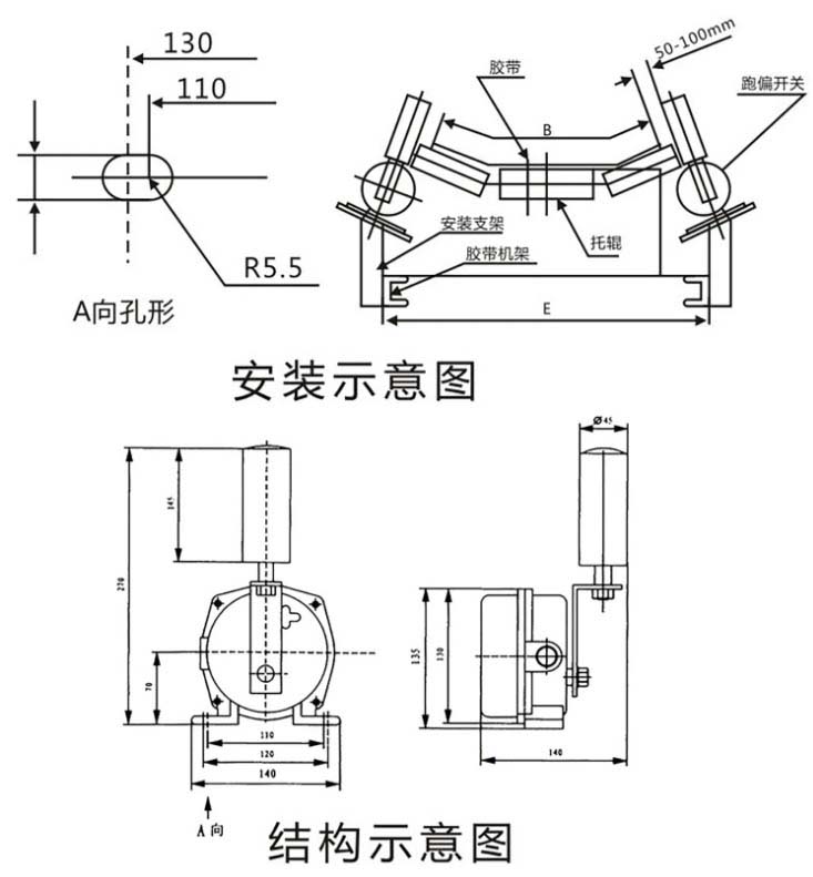 2.跑偏開關(guān)立輥與輸送帶正常位置的間距宜為50~100mm。