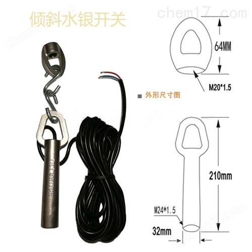 傾斜開關垂直懸掛在受到物料的作用力后偏離垂直方向超過15°時,傾斜開關內(nèi)的水銀開關動作,無論向哪個方向傾斜,常閉的觸點會斷開。當傾斜開關脫離物料時,傾斜開關回到垂直位置后,水銀開關接通。