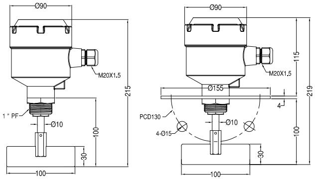 (1)料位計不得安在薄膜正對著進料的方向,以免使得物料直接 沖擊薄膜,引起誤動作。